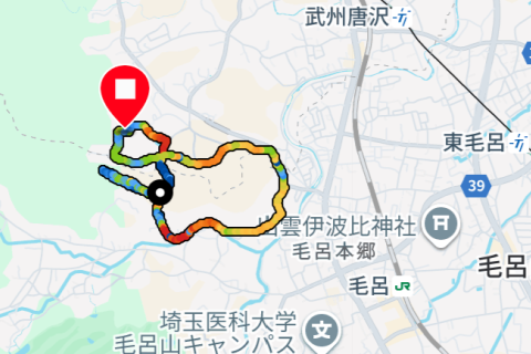 GPSの軌跡を見た感じだと、東側にスタートしてキャンプ施設を通り、トレイルに入ってピストン後、ロードパートを反時計回りで帰って来る流れなのかな。