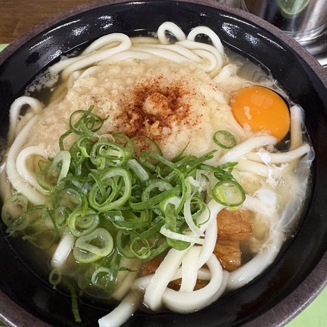 つか夫さんからクレイトンハウスのチキン南蛮がおすすめと情報いただいてたのですが、微妙に場所が離れてるのと、風呂入ってお土産買って次の目的地へ向かわねばという事で、スピード勝負のうどんで補給。
