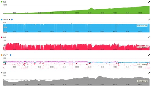 ここからも緩めではあるものの上り基調で、6:30/km~7:00/kmペースで進む。