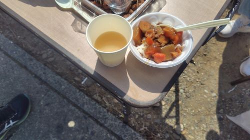 信号渡った所にエイド見えてるのになーと思いつつ先にエイドイン。