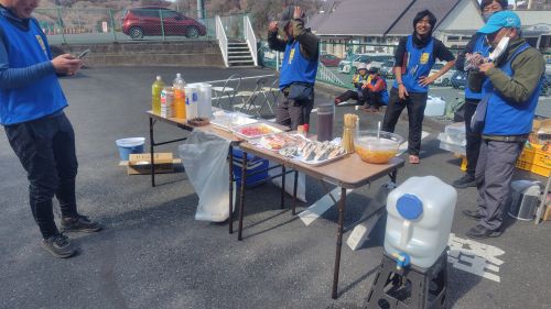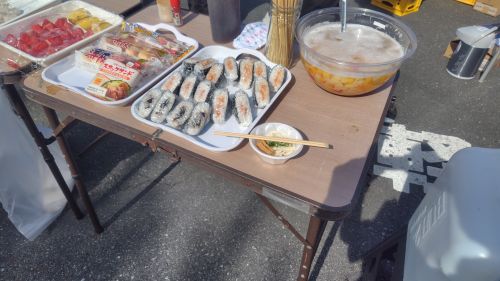 堀さんに到着入力していただき、うどんをいただき、おにぎり食いつつ、おかわりで豚汁食って、フルーツポンチでスッキリ。