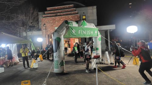 スマホ画面を失った精神不安から単独走だとボロボロになってそうな感じでしたが、エイドでスタッフさんとお話ししたり、前を走る杉原さんの背中を追ってみたり、前に後ろに現れる平田さんが絡んでくれたおかげで、気分的にそこまで落ちる事なくゴールする事が出来ました。
