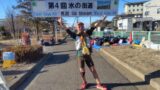40km付近の小さな上りで、たい焼き姿のさんたろさんに再開。ヤベーよキツ過ぎるよーと言いつつ、ラスト頑張ってとエールをいただき、あと2kmだしなーと切り替えたら5:00/kmまでは戻せて来た。