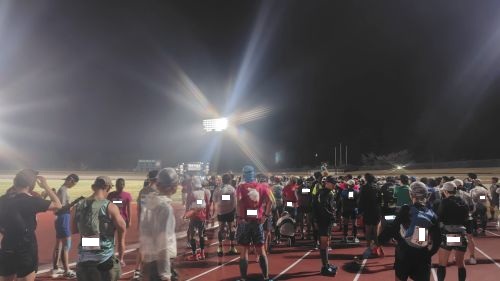 急いで競技場に向かってトラックに整列するも凄い人数だな。みゃこさんの煽りスピーチを聞いて、カウントダウンが始まり4:00スタートとなりました。
