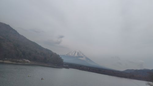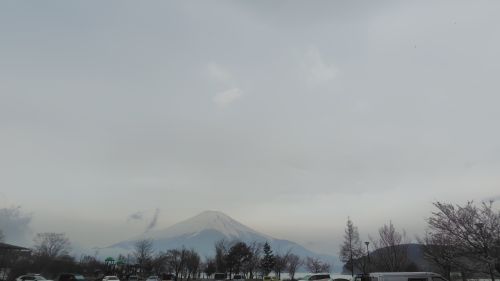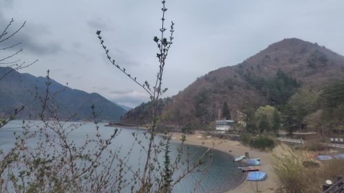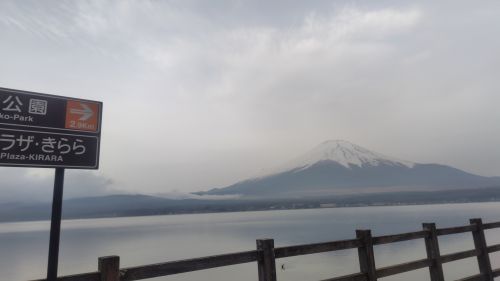 信号待ちを何度か繰り返しつつ狭めの道をトラックに煽られつつ進んで山中湖が見えて来た。