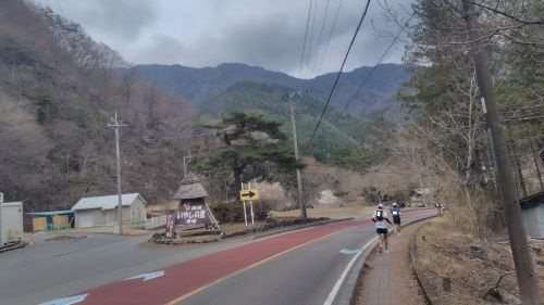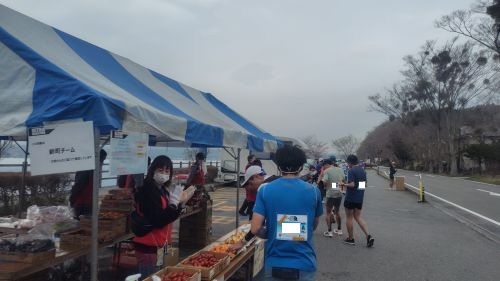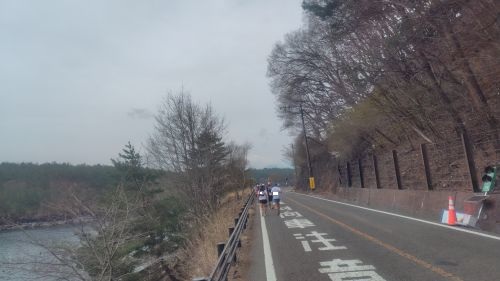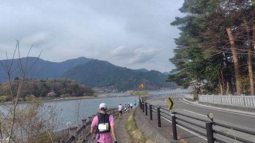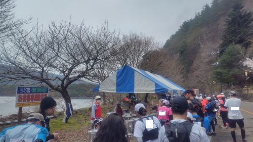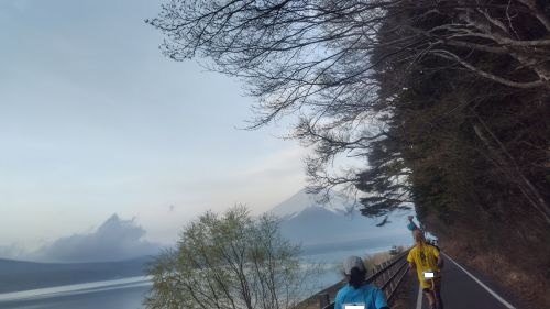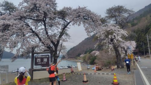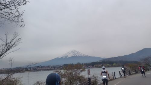 富士五湖ウルトラマラソンという事で湖畔をのどかに走ると思いきや、思った以上のアップダウンがあり、湖畔の強風でサンバイザーが吹き飛ばされかける場面もあり、中盤以降はなかなか厳しい展開でした。