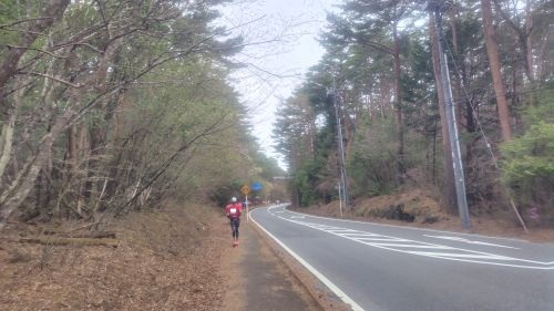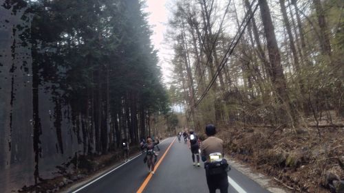 が、ここからは富士登山競走序盤で登場する緩めの斜度がダラダラ続くロードのコース。110km以上走ってきたヘロヘロの足ではなかなかどうして走り出しにくい。