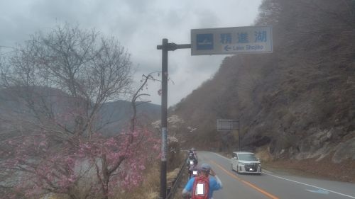 湖畔の上りをなんとか走って進んでたら、前方に白ハット白タンクの男性を発見。