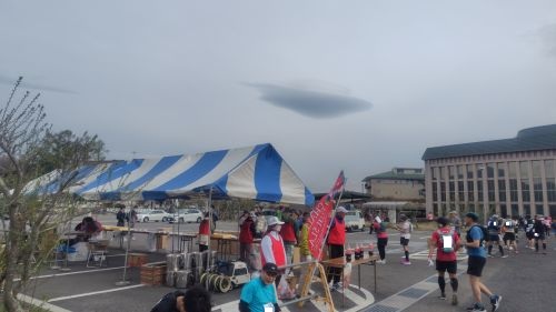 行きは気づかなかったけどエイドに吉田うどんあったのか。ちょっとお疲れモードなので縁石に座ってゆっくりとコシの強いうどんを噛みしめます。