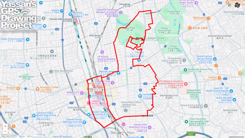 大宮駅を起点にして大宮公園を走るのは、このあたりのGPS絵画の定番でいい雰囲気でした。