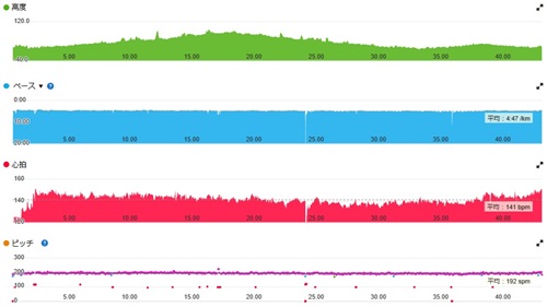 気持ちは錯覚jogモードで4:50/km前後で頑張り過ぎず進む。