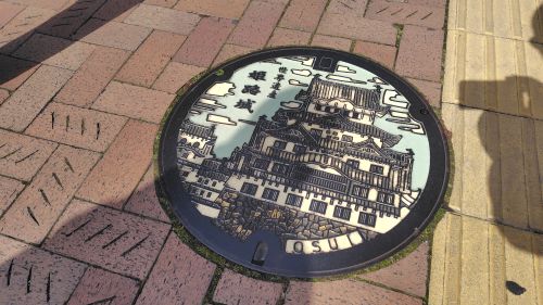 駅前には姫路城のカラーマンホールがありました。