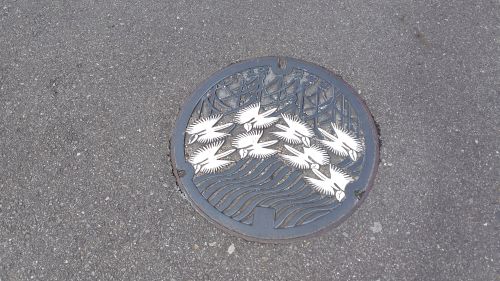 通常のマンホールはシラサギデザインですね。