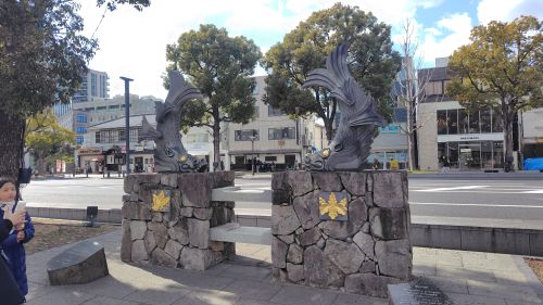 駅前の歩道に鯱瓦が飾ってありました。フォトスポットがたくさんあって観光地って感じです。