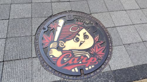 駅前には広島カープのカラーマンホールがありました。