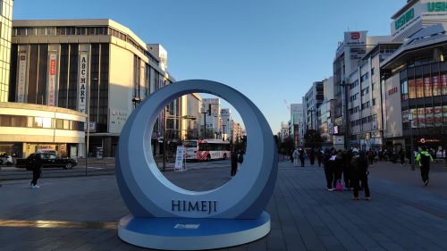 ここから写真撮ったら姫路城が遠くに写る体のモニュメントなのか。混雑してたのでサラッと撮って先を急ぐ。