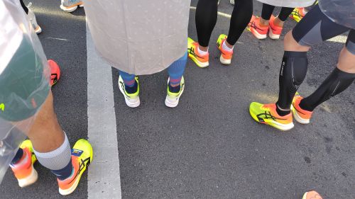 屈伸しながら周囲を見てたらほぼ皆アシックスのシューズでビックリ。速い方はナイキ多いイメージだったのだが時代は変わったのだな。