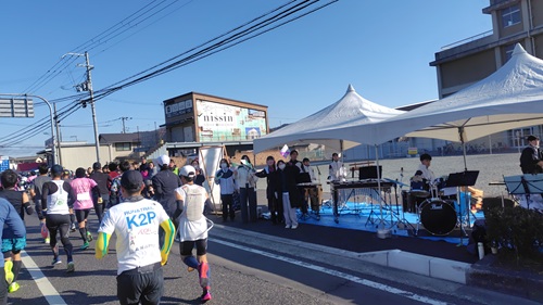 沿道では吹奏楽の応援が響いて気分がいいぞー!