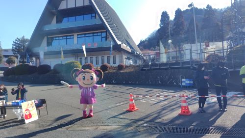 調子は悪くないものの上り基調だからか巡行ペースはジリジリと落ちて来たが、ゆるキャラの応援が微笑ましい。