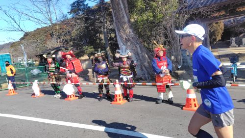 沿道には甲冑姿の応援もありテンション上がるとペースも少し上がる。