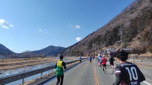 応援で気持ちが戻りペースも少し上げて進む中、たむじょーさんがGoPro片手にランナーを煽りつつ進んでいるのが見える。