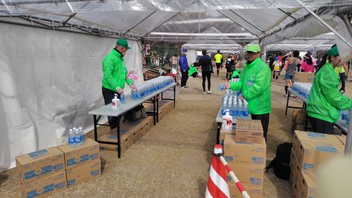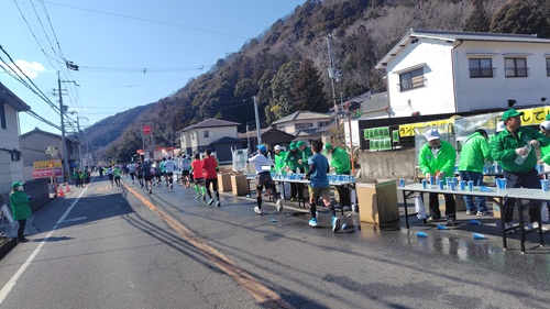ゴール後はポカリスエットを受け取ります。