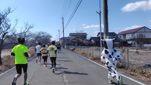 28kmあたりで後ろから大声援を受けながらウシさんがスピードに乗って走って行く。流石Aブロックゼッケンだけあるな。
