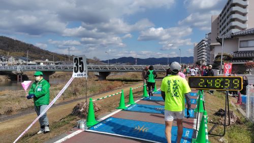 中間地点を超えて1:37:29。目標タイム厳しそうだわーと意気消沈。
