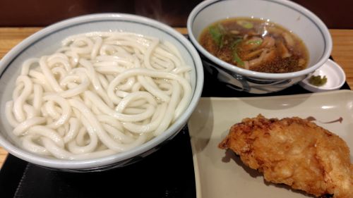 とり天をかじってうどんをすすりつけ汁もすする。つけ汁に入ってる鶏肉も噛み応えあって美味いですね。
