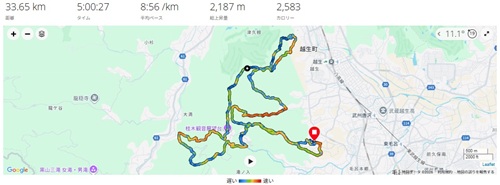(参考情報 距離:33.65km 気温:11.1℃ 高低差:2,187mD+ 2,263mD-)