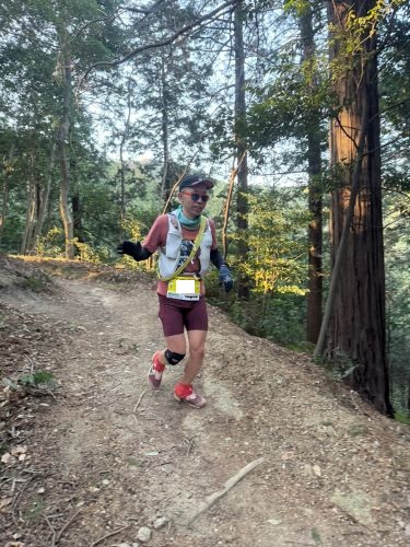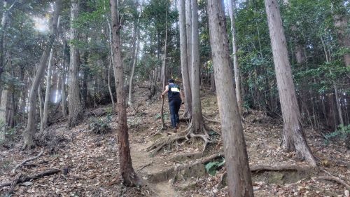 小刻みにステップして上るものの、冬場の練習はショッピングセンターの階段上り下りとトレッドミルくらいなので、根っこが多いトレイルにイメージがついて行かず序盤から根がかってダイブorz