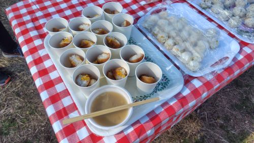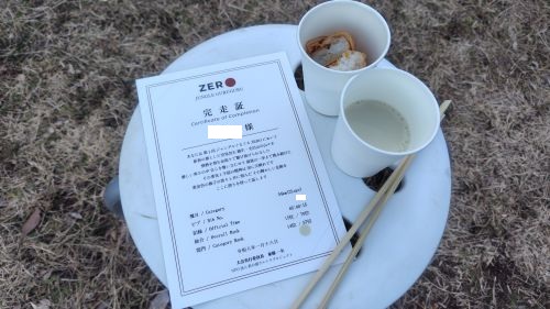 完走証受け取ってあったかーい豆乳スープとお稲荷で一息。