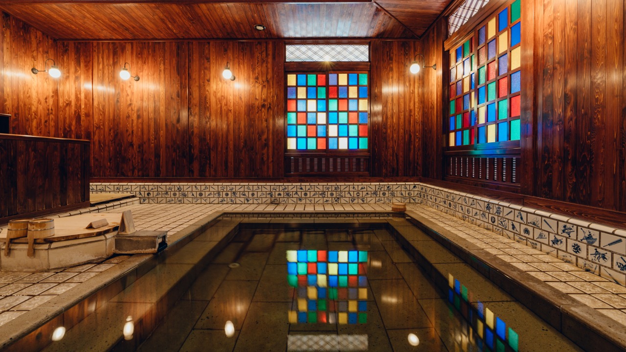 ボディソープとか使えないけど、かけ湯をしてステンドグラスを眺めながら熱いお湯に浸かってホッと一息。