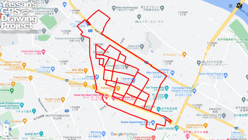 水戸のわら納豆(茨城県水戸市)9km | GPSアート.info
