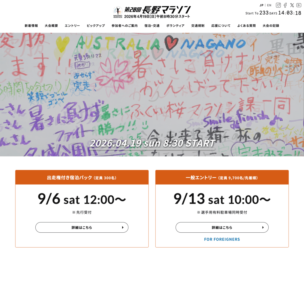 エントリー受付が1ヶ月ほど早まります!第28回長野マラソンの一般エントリー受付開始は9/13(土)10:00〜
