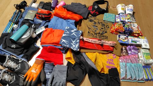 前日は走らずに装備確認のみ。奈良石舞台との差は、耳まで隠すキャップと携帯トイレ、カップヌードルと俺は摂取すと酔い止め薬を追加、カフェオレをルイボスティー+砂糖に変更あたりでしょうか。Tシャツはカムロトレイルランにしました。