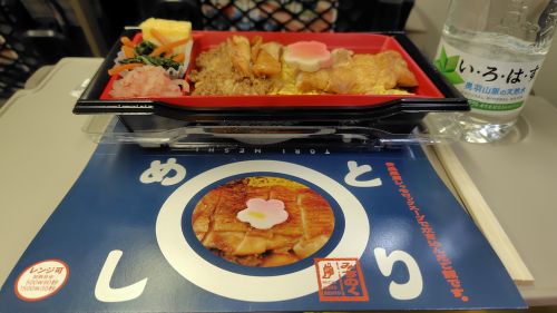 始発の新幹線でとりめしを食べつつ、スタート昼だから今なら飲んでも良くない?という誘惑に負けず水で我慢。