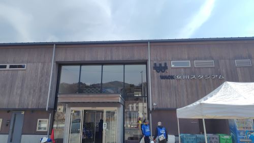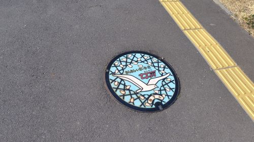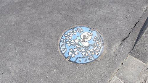 近くのトイレでスッキリしてから、徒歩15分のWACK女川スタジアムへ移動。いい感じのマンホールが目にとまります。