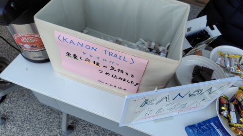 まるさん来ないなーと思いつつドリンク準備しようとエイドに行ったら、2年前の雪のカムロトレイルでマーシャルされてた方見つけてお話しさせていただきました。今度は神室山上りにまた行かねばな。