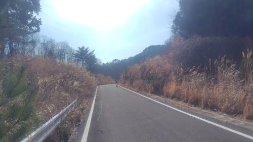 しばらくの下り基調から一旦ロードに出る。下り基調なので走れるけどゆっくり下ってバランスパワー食ってルイボスティー飲み、X見つつリプを飛ばす区間です。