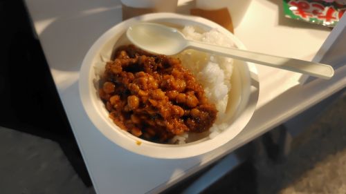 以前どっかの遠征で食った気がしますが、やはり王道のキムチ納豆だなと券売機で購入。