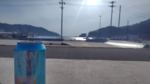 女川港近くのファミマでビール買って、海を眺めながらゆっくり朝ビール。