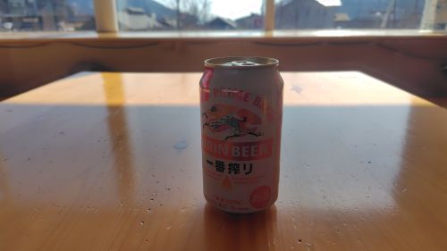 電車の時間までもう少しあったので、休憩所でビールを飲み、電車移動用のビールを買ってから移動。