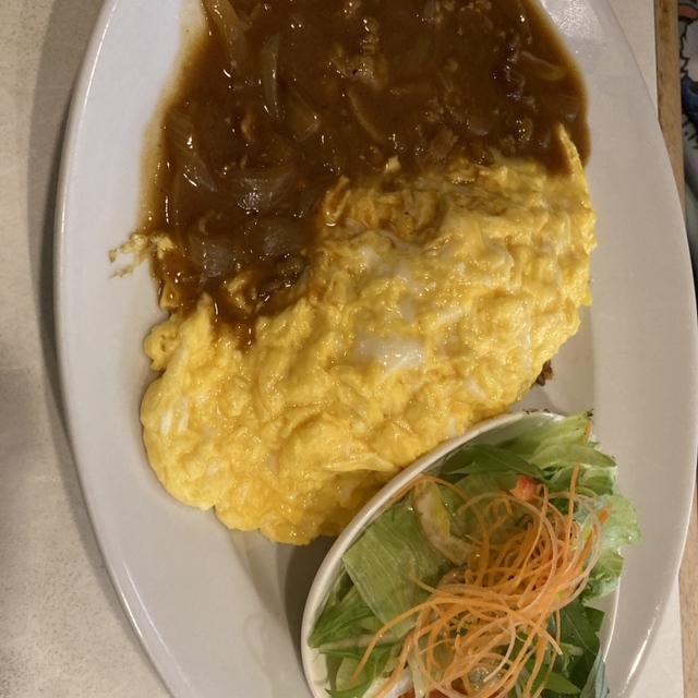 ハンバーグオムライスをオーダーすると大盛り無料ですとの事で大盛りに。