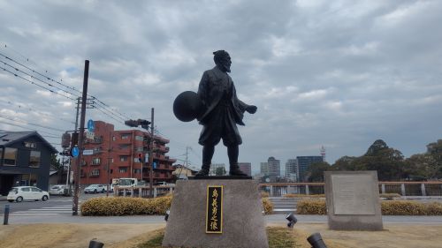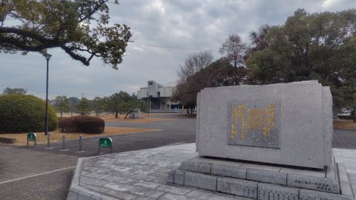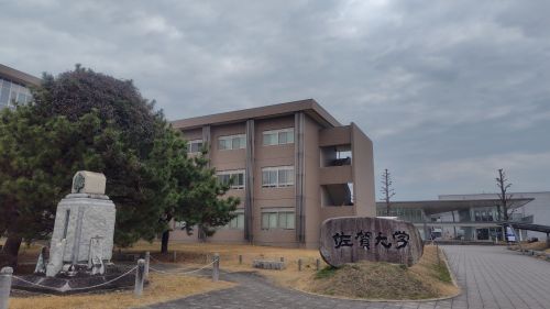 佐賀大学前を通過。美術館前には卒業制作なのか猫の像がありました。