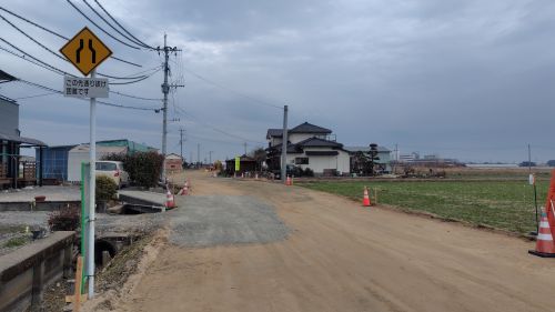 道路工事中で未舗装路へ突入。この後工事中の舗装路を走って少し迷った。。。