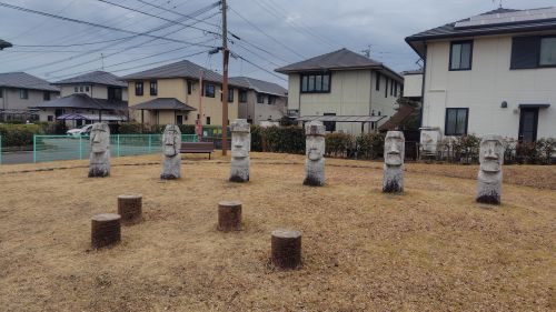 公園になぜか小さ目のモアイ像が鎮座してました。イースター島と姉妹都市とかかな。