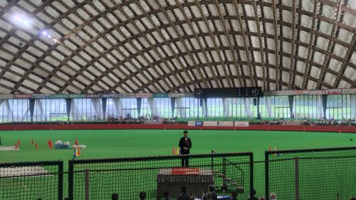 ゼッケンと参加賞とTシャツを受け取り観客席で待機。