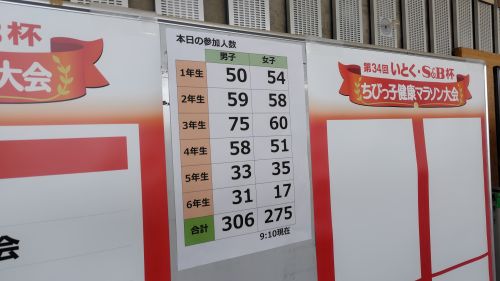 2年生女子は58名。高学年になると部活動とかもあって参加人数が少なくなるのかな。