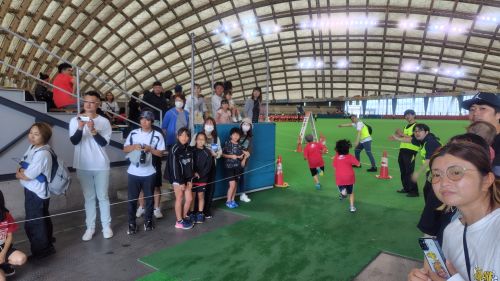 スタート後にドームから出る時の表情を見るためにスタート地点の反対側の出入口へ移動。